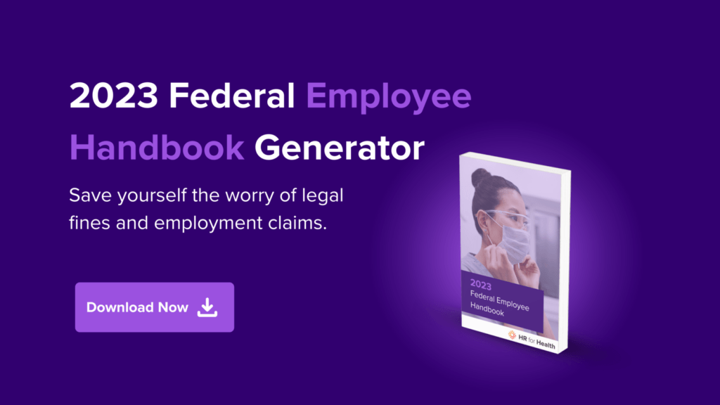 Quick note: This is not to be taken as legal or HR advice. Since employment laws change over time and can vary by location and industry, consult a lawyer or HR expert for specific guidance. Learn about HR for Health’s HR services