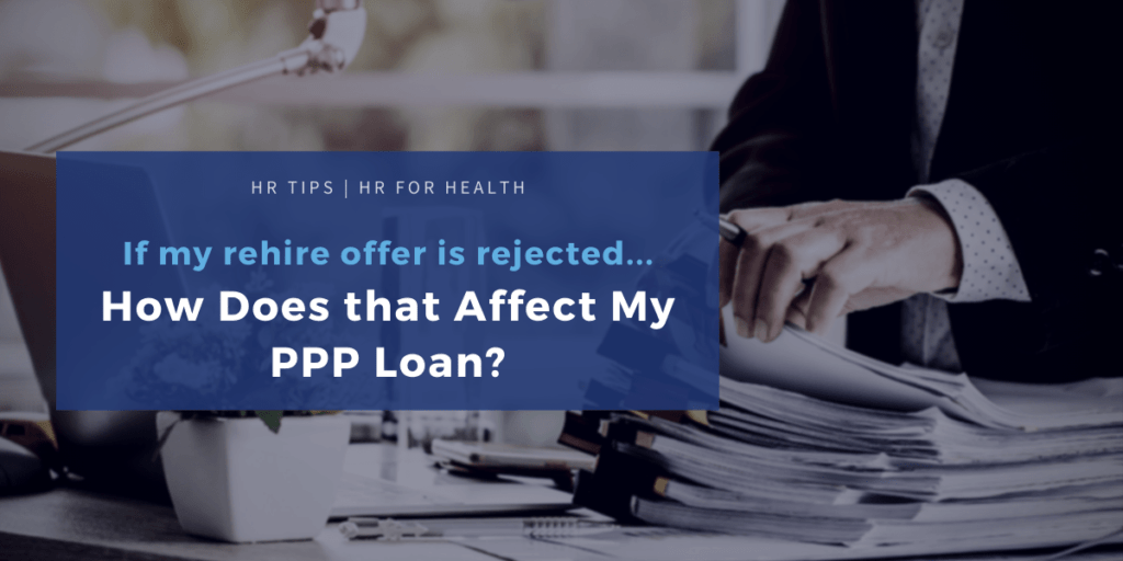 Whatever the reason for a former employee rejecting your rehire offer, you will not be penalized now under the Paycheck Protection Program (PPP) , as long as you document the rehire offer and rejection, report the offer to the state unemployment office, and show proof that you’re unable to find a similarly skilled employee to fill the position.